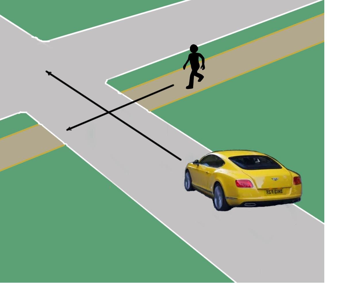 Пешеход собирается переходить дорогу. Автомобиль двигается прямо. Траектории движения у них могут пересечься – кто-то должен уступить. Пешеход правильно выбрал, где переходить в отсутствии обозначенного пешеходного перехода – на перекрестке, в продолжение тротуара. Однако он, пешеход, не должен создавать помех для движения транспортных средств, переходя дорогу вне обозначенного пешеходного перехода (п.4.5 ПДД). Преимущество у водителя авто. Но водитель управляет источником повышенной опасности, и к нему применима статья 1079 ГК РФ. А согласно этой статье водитель обязан возместить вред, причиненный источником повышенной опасности, если не докажет, что вред возник вследствие непреодолимой силы или умысла потерпевшего. В результате если пешеход не уступит водителю транспортного средства и пострадает, то невиновный водитель должен компенсировать ущерб. Пострадавший пешеход обращается в страховую компанию, с которой у водителя заключен договор ОСАГО, предъявляет документы (чеки, накладн