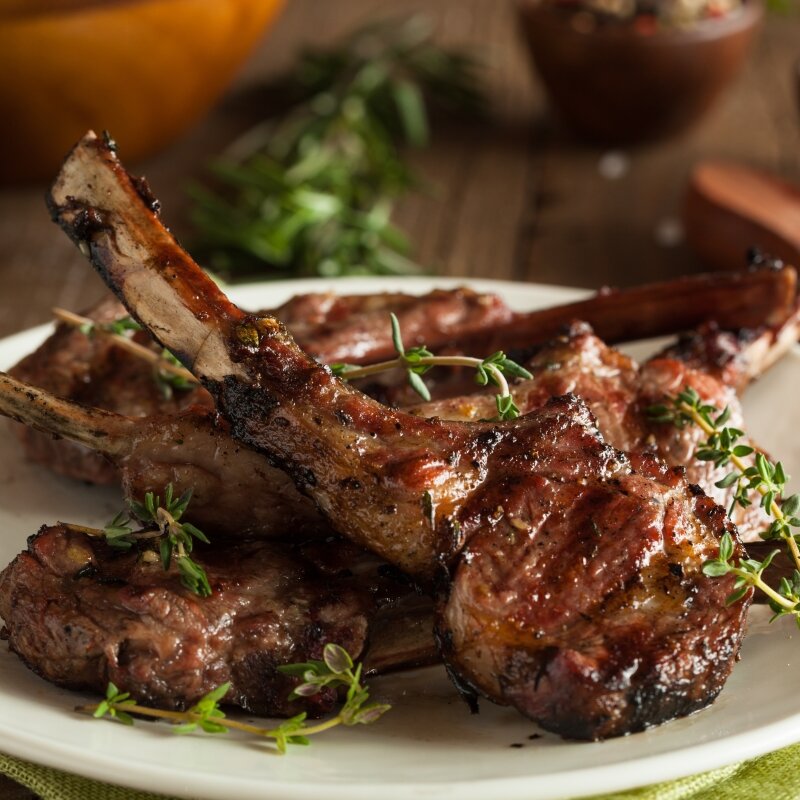 На мой взгляд, лучшее мясное блюдо на углях - корейка баранины. Самый важный момент в ее приготовлении - правильный выбор мяса! Корейка должна быть правильно разрезана и зачищена, иметь небольшие жировые полоски, так как при приготовлении они будут таять и насыщать мясо, не давая ему подсохнуть. Корейку ни в коем случае не надо мариновать, так как через час после того, как вы посолите и поперчите мясо, оно станет выделять сок и на углях просто высохнет. Идеальным местом, для жарки корейки является гриль. Он насыщает мясо дымком, прямой жар запечатывает мясо, а не прямой - доводит до полной готовности. Корейку нужно помыть и высушить бумажным полотенцем. За 15 минут до выкладывания на угли мясо нужно посолить и поперчить, можно добавить небольшое количество сушенного чеснока и розмарина. Изначально корейку обжариваем над углями по 2 минуты с каждой стороны с закрытой крышкой. Капающий жир будет постоянно зарождать огонь и мясо будет гореть, закрывая крышку гриля, Вы перекрываете кис