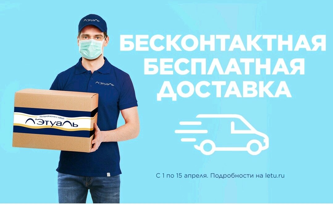 Начну с того, что с 1 по 15 апреля в интернет-магазине Л'Этуаль есть бесплатная бесконтактная доставка во всех городах, где присутствуют магазины сети Л'Этуаль. Что такое бесконтактная доставка, все уже, наверное, знают - курьер приносит посылку, ставит её под дверь и отходит на безопасное расстояние. При этом вам мне надо будет нигде расписываться.