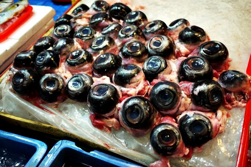 То, что люди в одной части света считают обычной каждодневной едой, может вызвать приступ тошноты у людей в другой части света. В этой статье мы собрали самые странные блюда, которые в отдельных странах являются обычной едой или даже деликатесом. Отважились бы попробовать их? 1. Глаза тунца (Япония) Говорят, что глаза тунца или медама по вкусу похожи на кальмара или осьминога, а купить их можно как в обычном магазине, так и в фешенебельном ресторане. Японцы считают, что медама способствует работе мозга и употребляют её, как правило, в варёном виде с большим количеством соусов. 2. Хакарль (Исландия) Хакарль представляет собой ничто иное, как подгнившее мясо гренландской акулы. Тушу убитой акулы закапывают в землю, придавливают сверху камнями так, чтобы ядовитые жидкости, содержащиеся в мясе, были выдавлены. Этот этап длится 6-12 недель. После этого тушу вытаскивают, разрезают на куски и подвешивают для высушивания. По словам тех, кому посчастливилось попробовать хакарль, готовый продукт