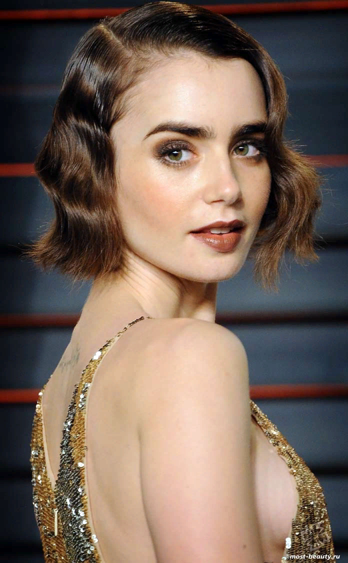 Лили Коллинз У Лили очень большие зелёные глаза, которые способны загипнотизировать любого читателя. Кроме фильмов, активно снимается в клипах известных исполнителей. В 2008 Лили получила престижную премию Herself в номинации лучшая начинающая актриса.