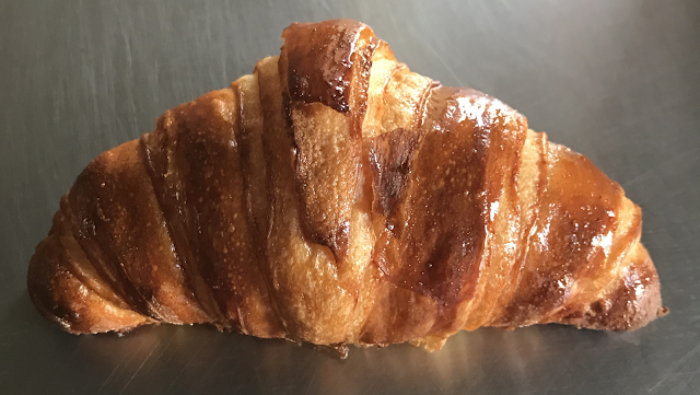 Закваска хмелевая – 942 г. Маргарин для слоения - 880 г. Технология производства: Замес теста 5 минут на 1-ой скорости 5 минут на 2-ой Температура теста 24-25 С°. Отдых 3-4 часа при температуре 28 С°. Складывание 3 простых складки для плоских изделий 2"книжки" для круассанов. Отдых 30 минут при 5 С°. Окончательная раскатка до толщины 2,5-3,0 мм. Формование треугольник весом 55-60 гр. Скрутить как круассан. Окончательная расстойка 90 минут при температуре 28-32 С° влажность 75%. Выпечка 14-16 минут при температуре 195 С°. Сразу достав из печи пропитать готовые круассаны заранее приготовленным сахарным