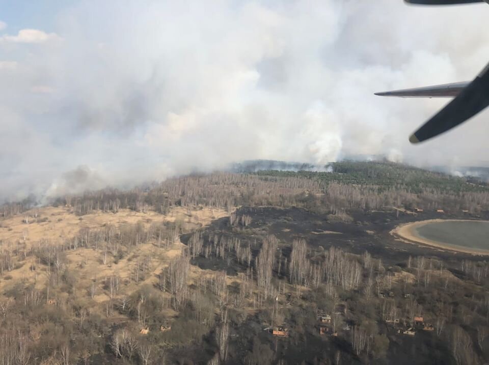 Норма для местности - 0,14. А дозиметры в очаге показывают 2,3. Как сообщает Государственная служба по чрезвычайным ситуациям в субботу, в огне находятся около 20 гектаров леса вблизи села Владимировка Котовского лесничества в Киевской области. Всего масштаб возгорания – около 100 га. По данным ведомства, к тушению пожара привлечены более 90 пожарных и 18 единиц техники, в том числе два самолета Ан-32П и один вертолет Ми-8.