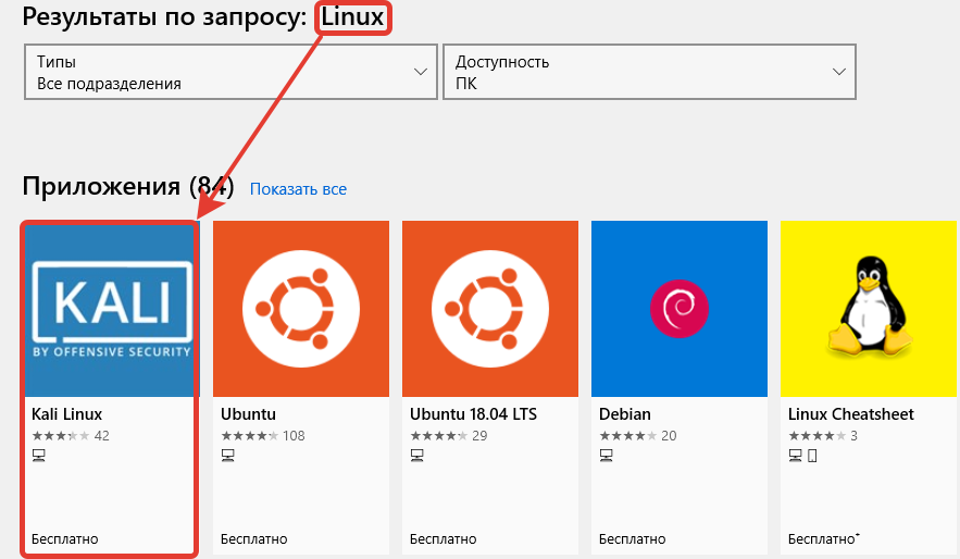Внимание! Все действия, описанные ниже вы выполняете на свой страх и риск. Я не несу ответственности за ваши действия. Статья опубликована в образовательных целях и ни к чему не призывает. Сегодня мы сделаем Кали Линукс в нашей Windows 10. Конечно, это будет не совсем полноценная Кали Линукс, но о том, как поставить полноценную версию рядом с Windows я рассказывал ранее вот в этой статье Итак, в магазине появилось официальное приложение "Kali Linux", нам нужно его установить. Теперь нужно обновить все компоненты до актуальных версий, для этого нам нужно зайти под Super User'ом командой: sudo su или sudo -i далее обновляем компоненты: apt update && apt upgrade -y После загрузки можно ставить утилиты, устанавливать скрипты с гита, и так далее. Пользуйтесь и подписывайтесь на канал)