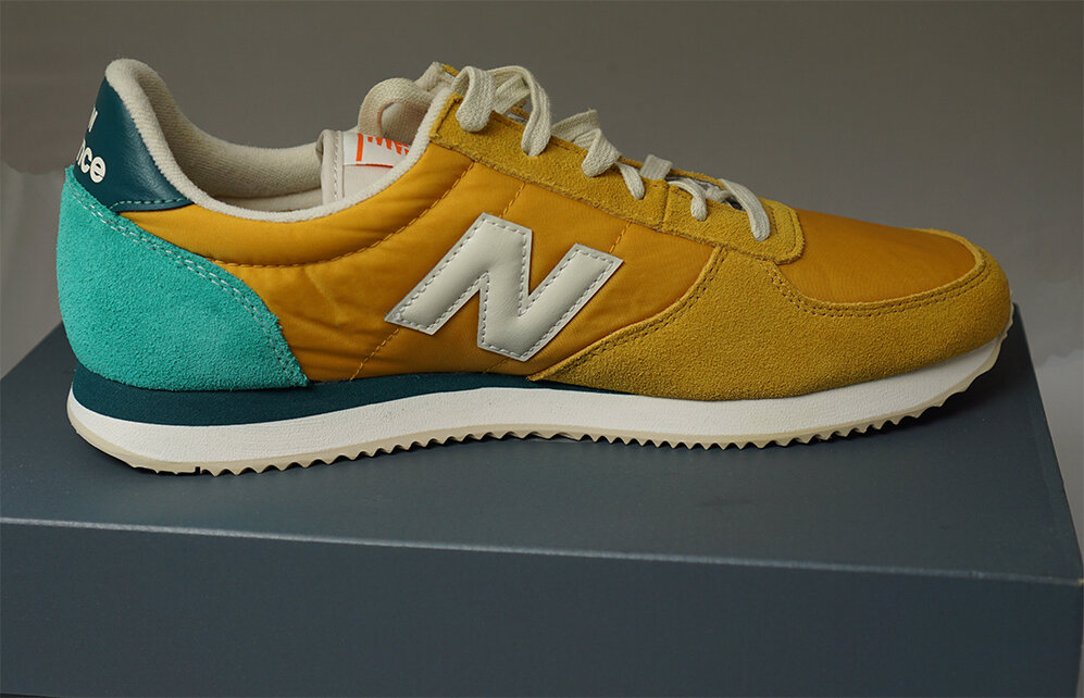 Возвращаемся к нашей любимой теме оригиналов и подделок и продолжаем помогать Вам делать правильный выбор. Наша очередная статья посвящена кроссовкам New Balance 220. Коробка Начинаем с начала, то есть с упаковки. Коробка графитово-серого цвета с серебристым логотипом в центре крышки и по бокам. С трех сторон коробки внизу надпись New Balance серебристого цвета. На правом боку коробки прорезь, чтобы было удобно доставать коробку с полки. На левом боку наклеена белая этикетка с информацией о модели. На этикетке указан номер модели, обозначено то, что эта модель мужская на английском и французском языках, указаны размеры в трех размерных сетках: американской, английской и европейской. Кроме того, указана также полнота обуви в буквенном обозначении и на тех же двух языках, адрес официального сайта марки и штрихкод. На задней части коробки размещен значок, сообщающий о том, что коробку можно переработать. Также указан информация, что коробка сделана из переработанных материалов, и указано
