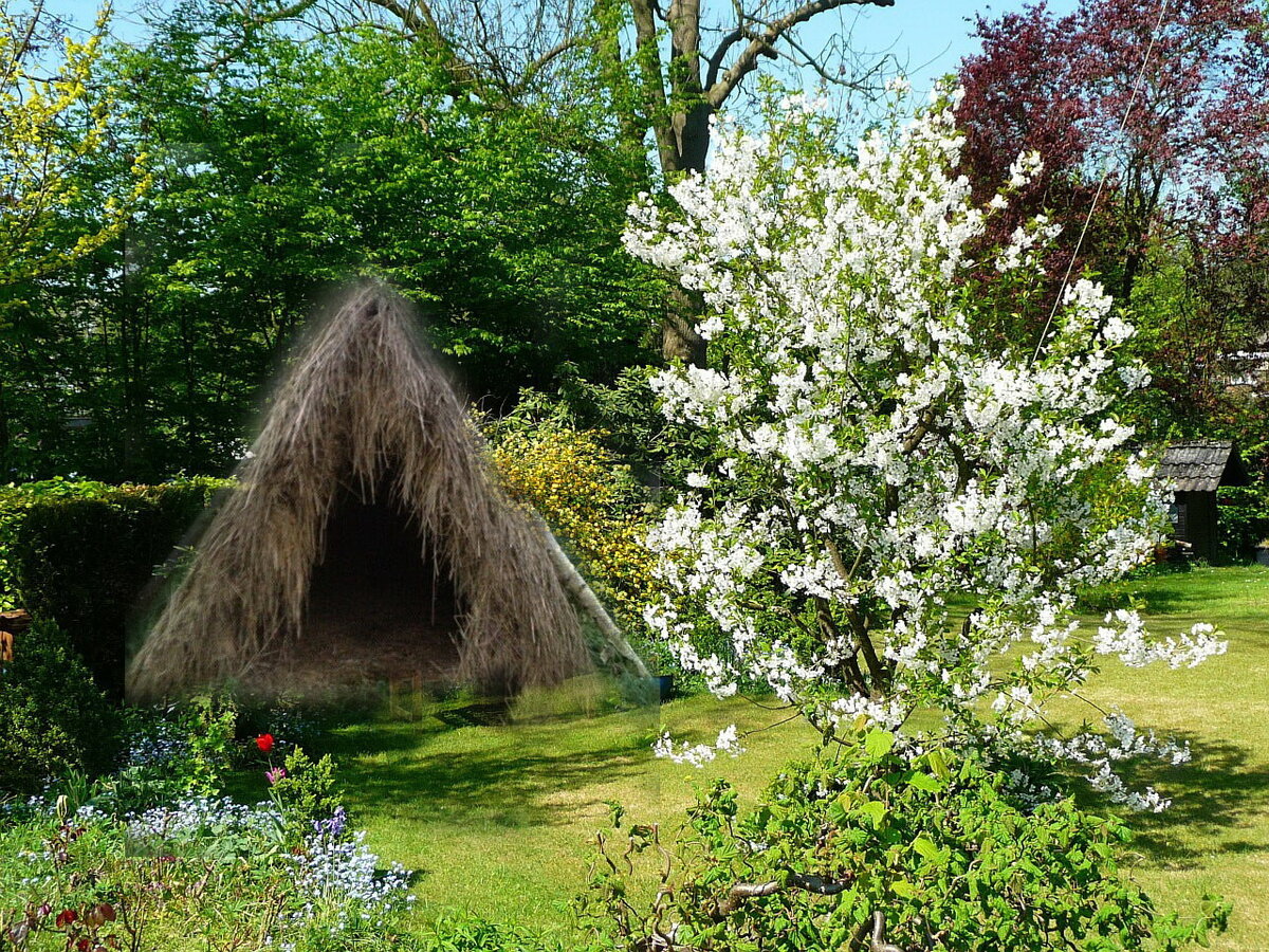 Где ж этот дом с оторвавшейся ставнею, Комната с пёстрым ковром на стене.. .Милое-милое, давнее-давнее Детство моё вспоминается мне. Как только на улице устанавливается тёплая погода,мы решаем с Витькой,где и как будем строить шалаш.Где-вопрос риторический...конечно же в вишнёвом саду,что перед домом и лучшее место в саду у Витьки...там деревья погуще.Нам,как партизанам,нужно быть в стороне от посторонних глаз и чем меньше народа знает о нашем доме,тем лучше. Пожалуй главный вопрос был в том,из чего строить?Это сейчас доски валяются тут и там,а тогда о доске мечтать не приходилось...брали топор и шли вниз к болоту за хворостом.Несколько штук ветлы на опоры,поперечина и хворостом обрешетка.Всё это связывалось алюминиевой проволокой,которой можно было обзавестись,в какой-нибудь свалочной яме.Дальше в ход шёл обычный мох и если повезёт,то находили кусок рваной клеёнки,всё там же в яме или кусок рубероида,что крепилось над изголовьем,что б значит дождь не намочил главное что у нас было