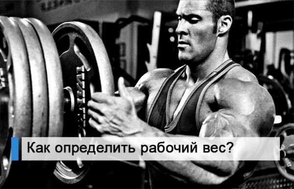 Ну, например: допустим в вашей тренировочной программе есть упражнение подъем штанги на бицепс, которое вы должны выполнить в 3-х подходах по 8 повторений, так вот, рабочий вес в этом движении будет тот, с которым у вас получиться выполнять как минимум 8 повторений, но не больше, т.е. девятое вы уже не сможете осилить, последнее (восьмое повторение было отказное), это и есть рабочий вес.