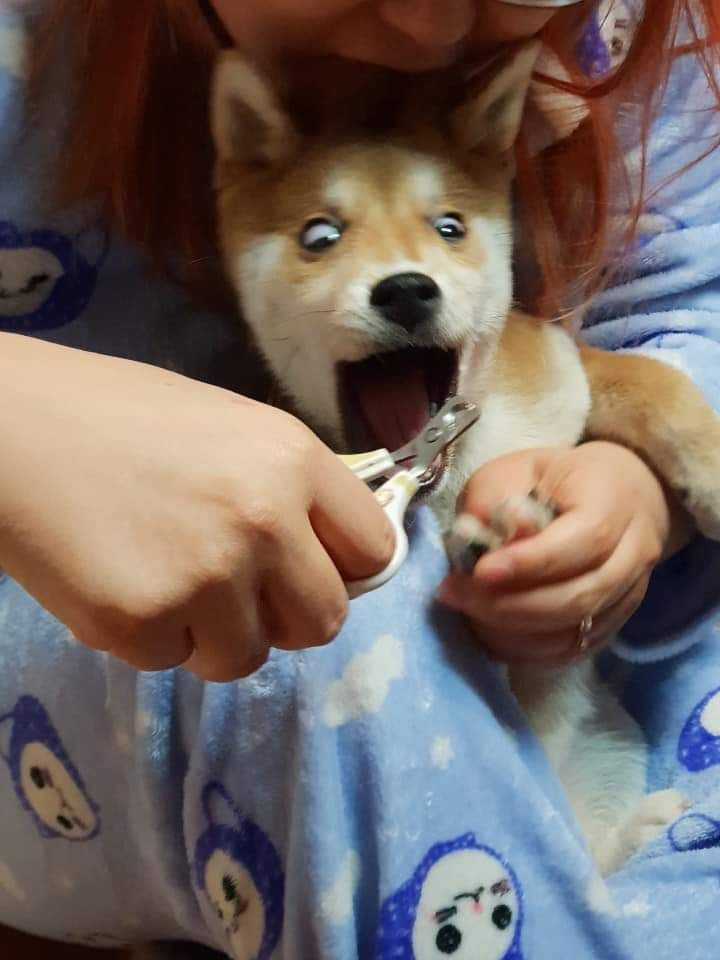 У животных быстро растут когти, которые они стачивают, живя на свободе, однако если питомец домашний, то процессом обрезания когтей должны заниматься его хозяева. Ведь длинные отросшие когти у животного могут привести к деформации суставов и другим травмам животного. Однако это занятие не такое уж и простое, если любимец с характером или просто отличный актер, как и герой нашей сегодняшней статьи. Это собака, и зовут ее Чи Чи. Эта статья обязательно поднимет вам настроение! Домашний актер Все началось с того, что хозяйка решила подстричь когти своему домашнему любимцу, который, как оказалось, отличный актер. Естественно, что подобная стрижка требует от хозяев внимательности и осторожности в своем выполнении, однако не все то боль, что отображается в эмоциях животных. Хозяйка героя этой статьи посадила пса на руки и уже поднесла ножницы к когтям животного, как на его морде отобразилась невероятно забавная реакция. Кажется, он готов в любую минуту закричать от боли или страха, однако