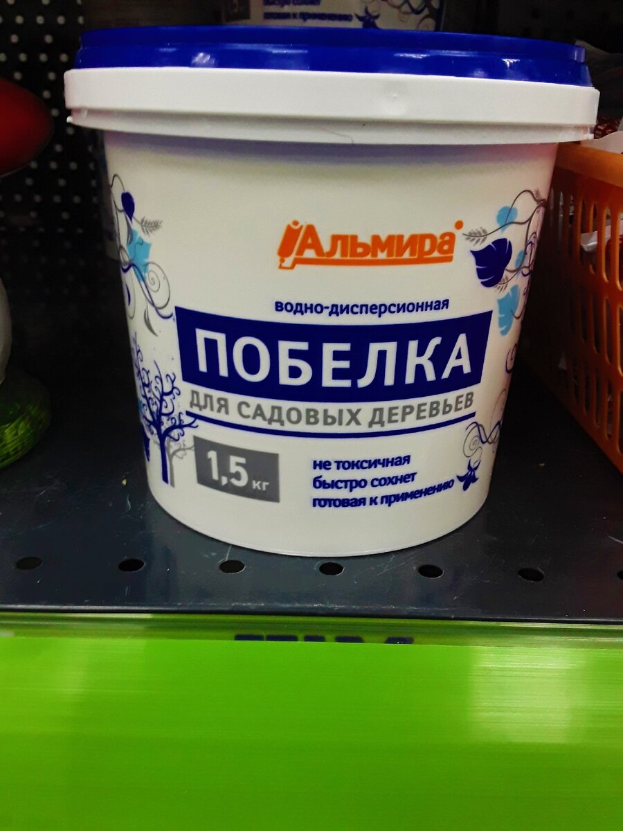 ПОБЕЛКА ДЛЯ САДОВЫХ ДЕРЕВЬЕВ,ценника не было,но я спросила на кассе и мне сказали 55 рублей цена ведёрка,а в нём 1,5 кг. Опять появились в продаже такая