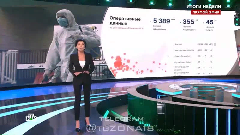 Автор и ведущая программы «Итоги недели» на НТВ Ирада Зейналова оговорилась в прямом эфире о том, что в России от пандемии коронавируса скончались 40 тысяч человек, чем вызвала в твиттере массу обсуждений и споров. Пользователи социальной сети уверены, что ошибка телеведущей не была случайной, и на самом деле Ирада знает о ситуации с COVID-19 больше, чем простой обыватель. В воскресенье, 5 апреля, ведущая вечерней программы «Итоги недели» Ирада Зейналова оговорилась в прямом эфире. В начале программы телеведущая озвучила статистику по заболевшим коронавирусом в России. Как предполагалось, журналистка расскажет о данных с сайта стопкоронавирус.рф, но что-то пошло не так. За спиной Ирады Зейналовой появились актуальные данные, которые включали в себя количество инфицированных людей, тех, которые уже скончались и вылечились от COVID-19. В свою очередь, телеведущая заявила, что от инфекции в России погибли 40 тысяч человек, чем вызвала в социальных сетях волну споров и размышлений. Да,
