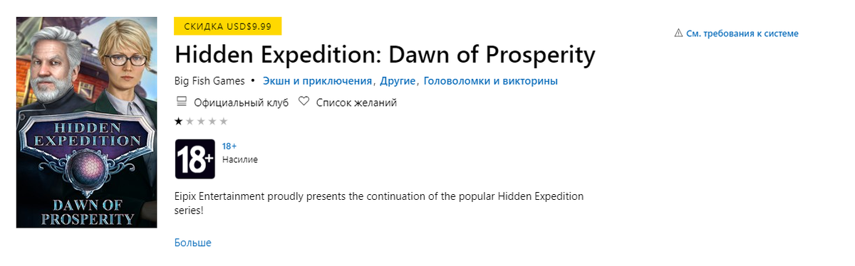 Hidden Expedition: Dawn of Prosperity Eipix Entertainment с гордостью представляет продолжение популярной серии Hidden Expedition! Здравствуйте, Агент! У нас есть для вас еще одно странное дело. Мы обнаружили необычный сигнал, идущий из окрестностей старой метеостанции. Там были обнаружены странные землетрясения, хотя этот район не является активной зоной землетрясения. Соседняя обсерватория также проявляет признаки активности после многих лет заброшенности. Мы подозреваем, что там происходит что – то большое и, возможно, зловещее. Отследите сигнал и узнайте правду!