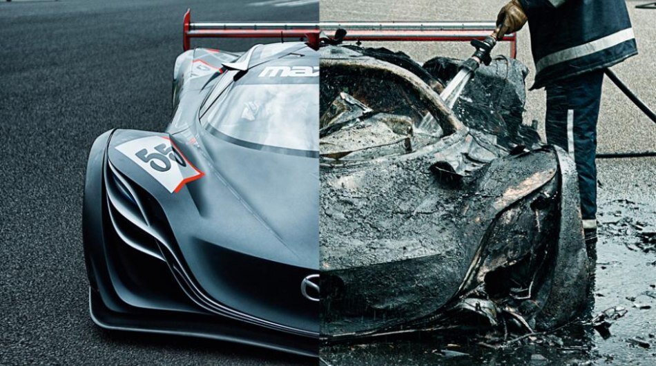Прежде хочу сказать, что Top Gear я воспринимаю, только когда ведут Джереми Кларксон, Джеймс Мэй и Ричард Хаммонд. За всю историю шоу, эти ребята на чем только не катались, от прототипов, произведенных в единственном экземпляре, до самодельных машин специального назначения, об этом тоже поговорим! Mazda Furai Открою список, пожалуй, с Мазды. На то время прототип выглядел как космический корабль. Даже сегодня его было бы не отличить от передовых Ferrari и Lamborghini. Но увы, на тестовом кругу «летающая тарелка» загорелась и через 8 минут от нее остался только пепел и каркас. Автомобиль был в единственном экземпляре и это было какое-то чудо заполучить его на тест драйв. Но, shit happens! Bugatti Veyron Далекий 2007 год, Капитан Улитка берется тестировать самую быструю (на тот момент) машину в мире - Bugatti Veyron. Дело было на засекреченном немецком полигоне длиной в 8 километров. По заявлением команды Бугатти, автомобиль разгонялся до 400 километров в час, на то время это б