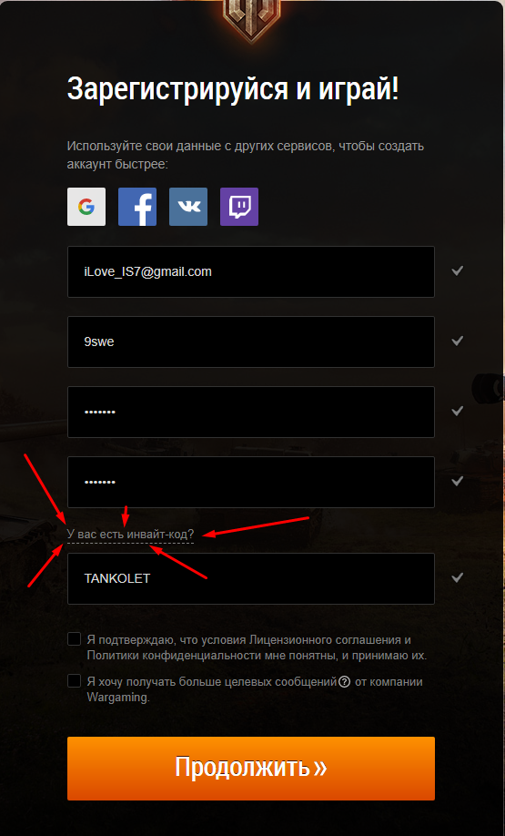 Создать аккаунт с максимальными плюшками для World of Tanks, бонусы по ссылке в виде премиум танков, игрового золота и премиум дней после регистрации. Приступим. Для начала переходим по этой ссылке https://ru.wargaming.net/registration/ru/?game=wot&_ga=2.1127409.1553630483.1586252399-1371037889.1586252399&style=dark&sid=SIDuE-y1veN292XUOCheddI9BlASyajewXs1_GmKQ8pnoQDq6VDeWK_5NpkLopBRxQ6p3-MnUPCHEZkke9RvPyU-_vvyJNwVGUgKmxUjJTpmSWD7OLYu_rP-cRKQTrytxDOGmew0GYO-ME Заполняем графу «У вас есть инвайт-код?» Какие бонусы появятся на аккаунте и за что: Теперь заходим в танки. Как вы только первый раз заходите в игру, вам нужно будет пройти УЧЕБНЫЙ ПОЛИГОН, рекомендуем это сделать, так как после прохождения, будут начислены 500 единиц игрового золота, а также Три дня танкового премиум аккаунта.. После прохождения Учебного полигона, рекомендуем пройти задачи «ДОРОГА К ПОБЕДЕ«, за нее начисляют 100 голды и 1 день танкового премиум аккаунта. Зашёл в ангар, а там нет Т-34-85М? Вам нео