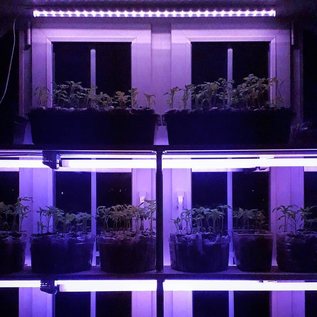 Можно приобрести или собрать стеллаж с полками по размеру подоконника. Прекрасные рамы получаются из металла и ПВХ-труб: они собираются, как конструктор, а после окончания сезона разбираются и не занимают много места. Хорошо себя зарекомендовали так называемые гроубоксы из металлического профиля и пластиковых полок с термоизоляционными шторками. Но и деревянные самодельные выглядят неплохо.
