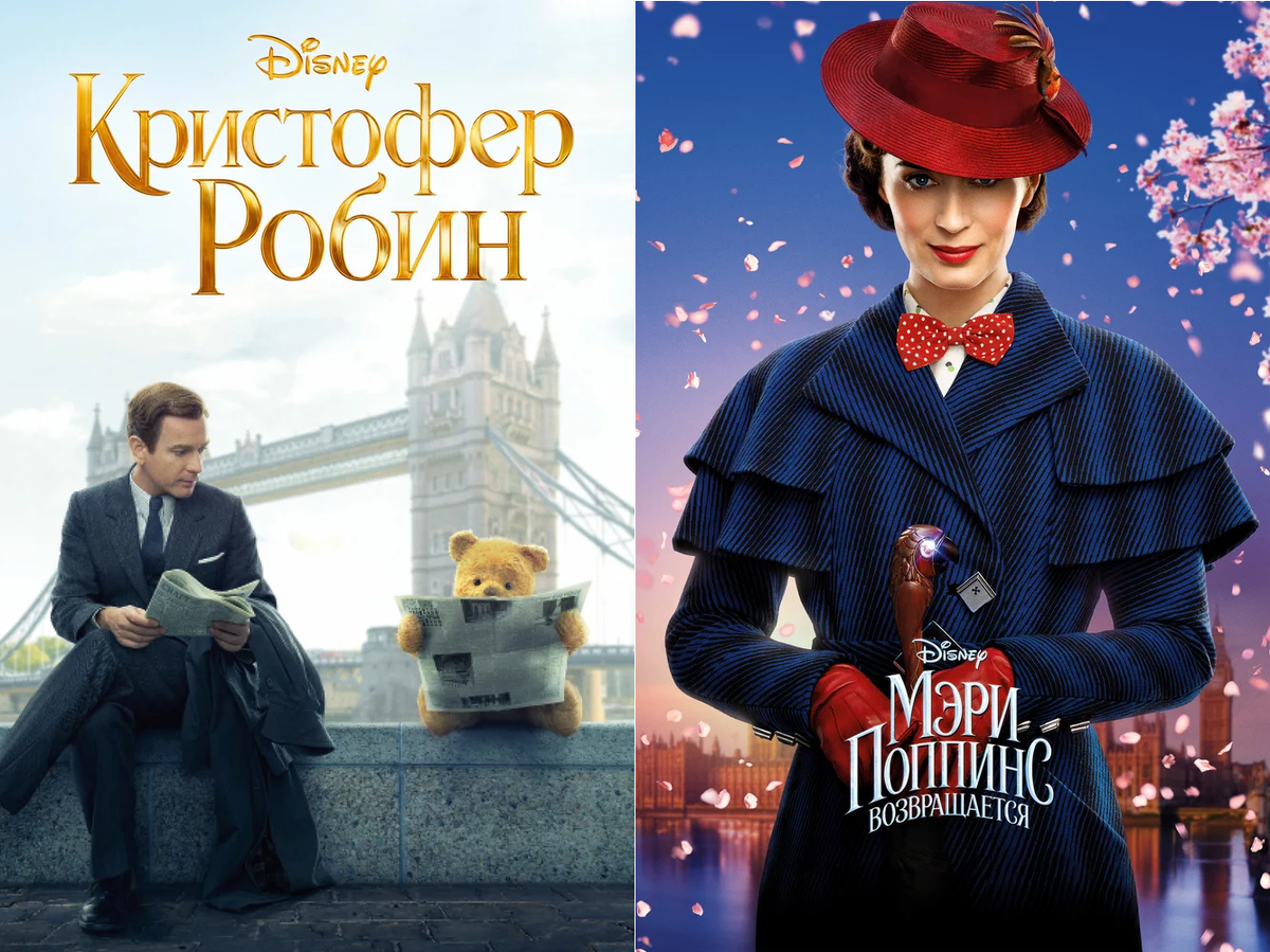 Оба фильма, и "Мэри Поппинс возвращается", и "Кристофер Робин" повествуют о повзрослевших детях-героях сказок, когда-то повстречавших волшебных созданий и теперь, уже во взрослой жизни, полной сложностей и откровенной печали, снова столкнувшихся с ними же. Сходства добавляет ещё и место действия — Лондон, место довольно мрачное, если судить по этим фильмам, от мрачности которого можно сбежать лишь либо волшебный лес графства Восточного Эссекса, либо же в миры созданные мановением руки Мэри Поппинс. Суть этих миров одна, они — выдумка детской фантазии, не зря сам Винни-Пух и, например, Иа-Иа, выглядят как самые настоящие игрушки (ими они и являются), просто ожившие, а вот Сова и Кролик нарисованы вполне реалистически, очевидно, Кристофер Робин просто встретил этих животных когда-то в лесу и с тех пор они стали неотъемлемой частью его выдуманного мира.