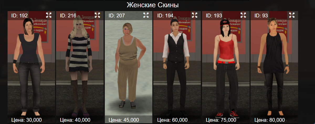 Разнообразие скинов в МТА Провинции велико) Скины делятся на мужские и женские. Женские скины: Мужские скины: Да-да. Мужских скинов намного больше, чем женских. Но с обновами ситуация исправится) До скорых встреч)