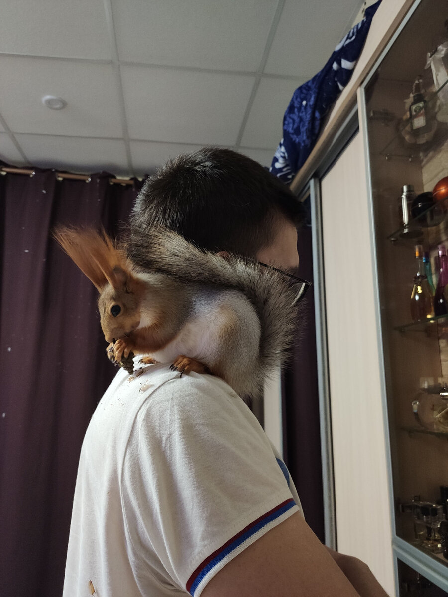 Из плюсов могу сказать то, что именно наш бельчонок очень умный! Всё понимает, знает много слов, любит своих хозяев!