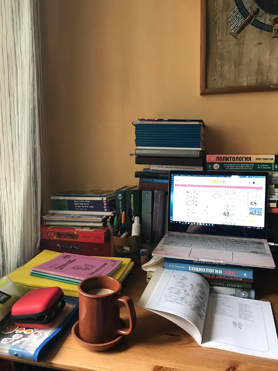 Неизбежные неудобства: у ребёнка в соседней комнате тоже идут уроки онлайн, связь «вылетает» ещё чаще, чем у меня, так как студентов в группах не более 20, чаще и вовсе человек 7-12, а учеников в классе моего сына 37.