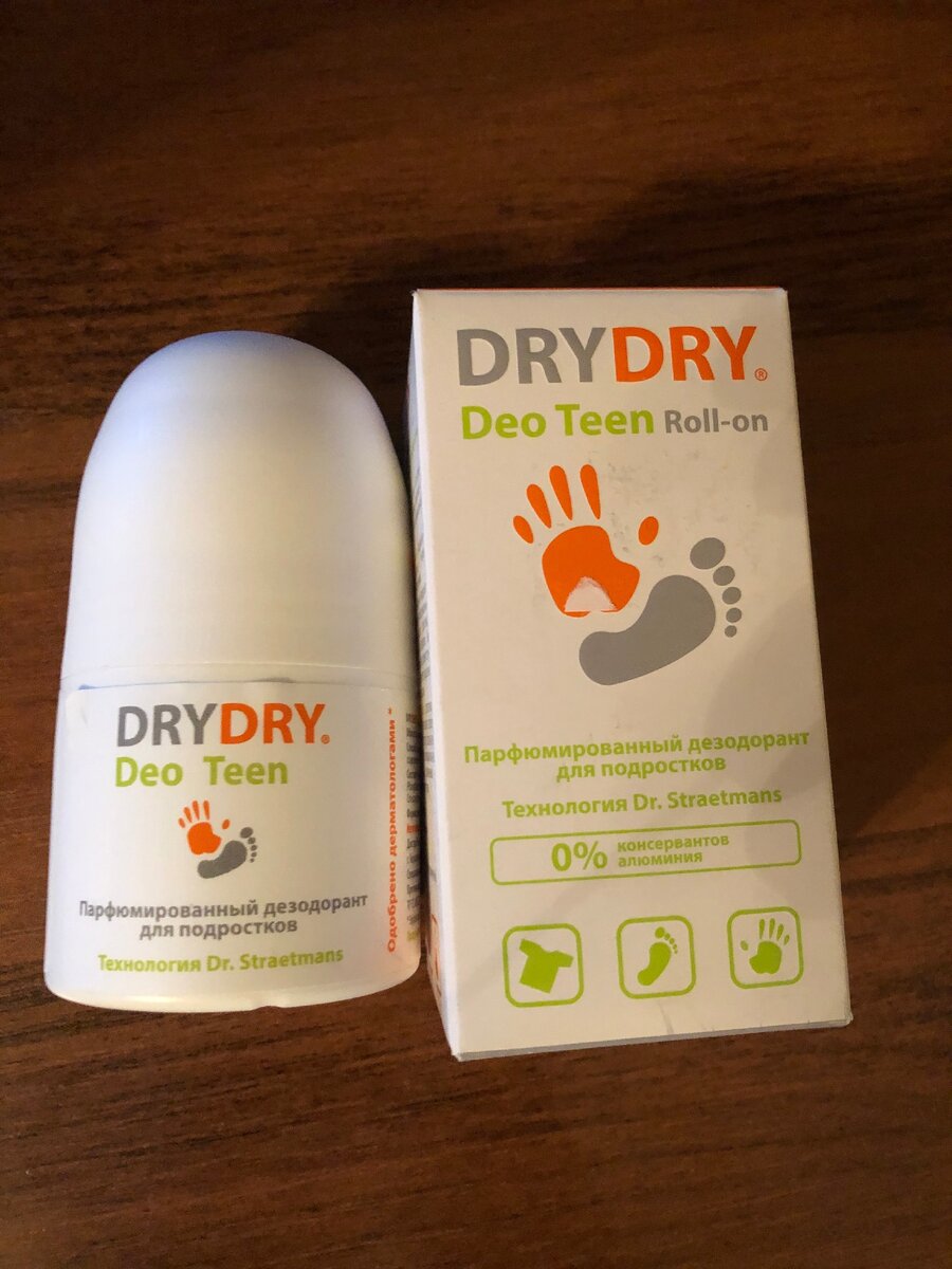 Начиная примерно с 13-14 лет у ребёнка начинается переходный возраст, и у всех он проходит по-разному. Кто-то становится более грубым, черствым, а кто-нибудь другой наоборот. Но изменения происходят не только в психологическом состоянии ребёнка, а также в его теле. Помимо изменений роста, голоса и другого происходят гормональные изменения, которые напрямую влияют на повышенное потоотделение. Больше всего пота выделяется в подмышечных впадинах, вследствие чего появляется дискомфорт, неприятный запах, а также всё это отображается на одежде( видно что в местах подмышек мокро, на белой одежде остаются жёлтые следы, которые могут не отстираться). Обычные дезодоранты не помогают и даже могут усугубить ситуацию. Специально для этого есть дезодоранты, в которых содержатся вещества, предотвращающие гипергидролиз. 1. Парфюмерный дезодорант для подростков DRYDRY. Данный дезодорант значительно уменьшает потливость, но не убирает её полностью, также пропадает дискомфорт. Мазать его можно на ладо