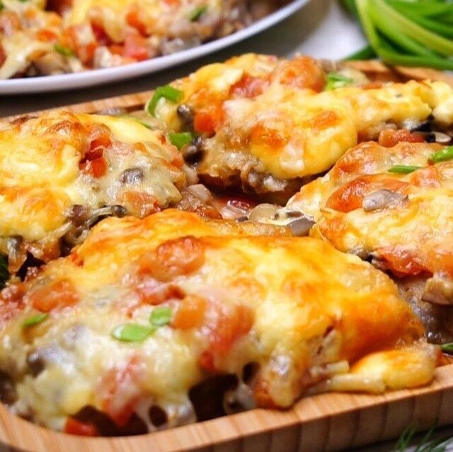Готовим шикарное блюдо к праздничному столу!Это вкусно! Беспроигрышное блюдо для праздничного обеда или ужина! Сочетание помидоров со свининой идеально, кроме того, они придают блюду чудесную кисловатую сочность, а в сочетании с сырной корочкой вкус получается просто бесподобный. По сути, это отбивные из свинины под вкусной начинкой.