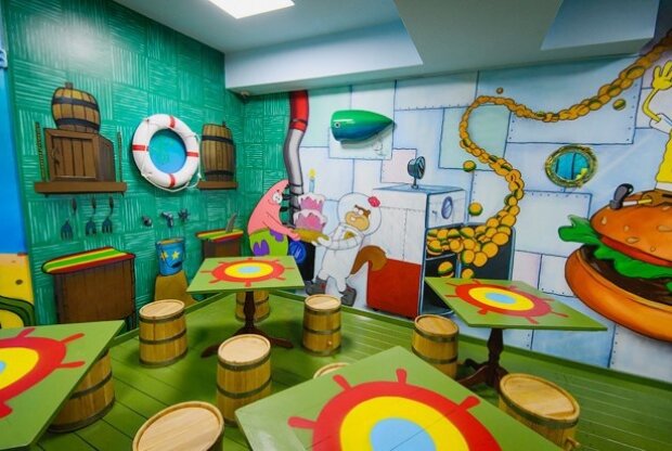 На Арбате есть такое кафе, которое является аналогом такого же заведения из мультика 《Губка Боб. Квадратные штаны》. Это фан-кафе открыто бывшим мэром Архангельска на месте его старого туалетного кафе Crazy toilet. Дизайнеры решили нарисовать на стенах персонажей из того же мультика. Посередине кафе находиться домик в котором живет Губка Боб. Вместо стульев стоят бочки, а официанты носят кепки, как в мультике.