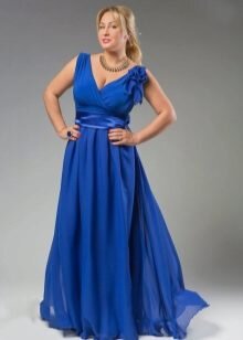 В качестве модели для вечернего выхода можно рассмотреть длинное шифоновое платье на чехле. Лёгкие складки тёмно-синего шифона, изящное декольте, рукава на бретелях и роскошный пояс помогут вам создать сказочный образ.