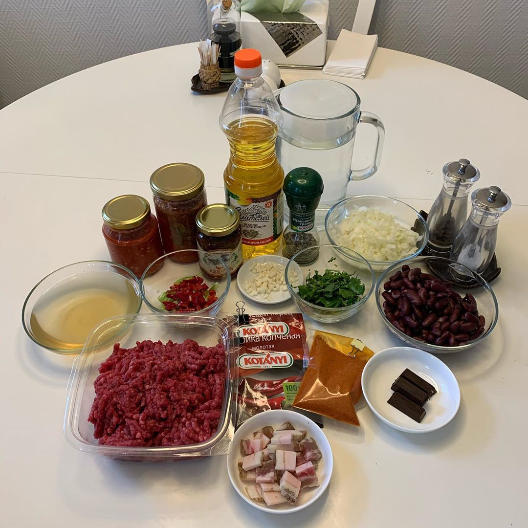 Сегодня третья, завершающая версия «Чили кон карне» с московским уклоном. В начале нулевых в одном из московских баров я разговорился с местным американцем. Как выяснилось, он очень любил готовить «Чили кон карне», но никак не мог найти в Москве нужных острых ингредиентов, и потому стал использовать нашу отечественную аджику.