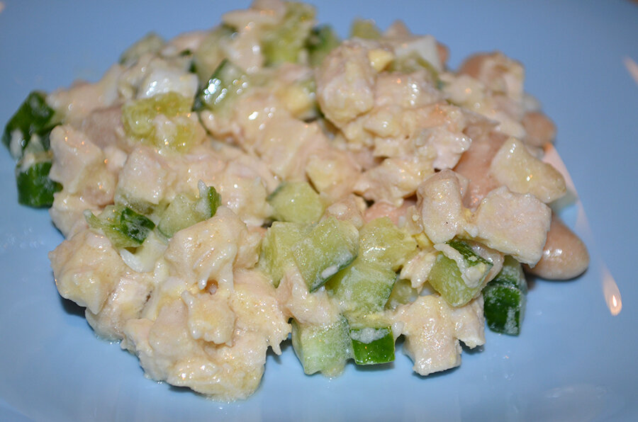 Быстрый пп-рецепт. Салат с курицей, фасолью и яйцом