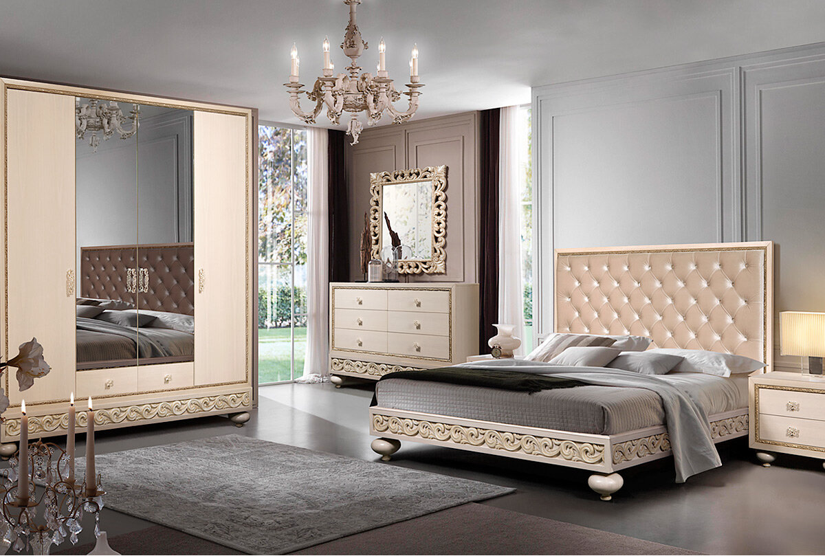 ▪ Вторая новинка этой весны - Коллекция "Адажио". Элегантные формы, украшенные резными узорами, изысканная лицевая фурнитура и благородная золотая патина делает эту коллекцию поистине роскошной. ▪ Благодаря нежному оттенку крашения, высокому изголовью кровати, обитой мягким велюром данная коллекция создаст атмосферу уюта и спокойствия. Посмотреть на сайте
