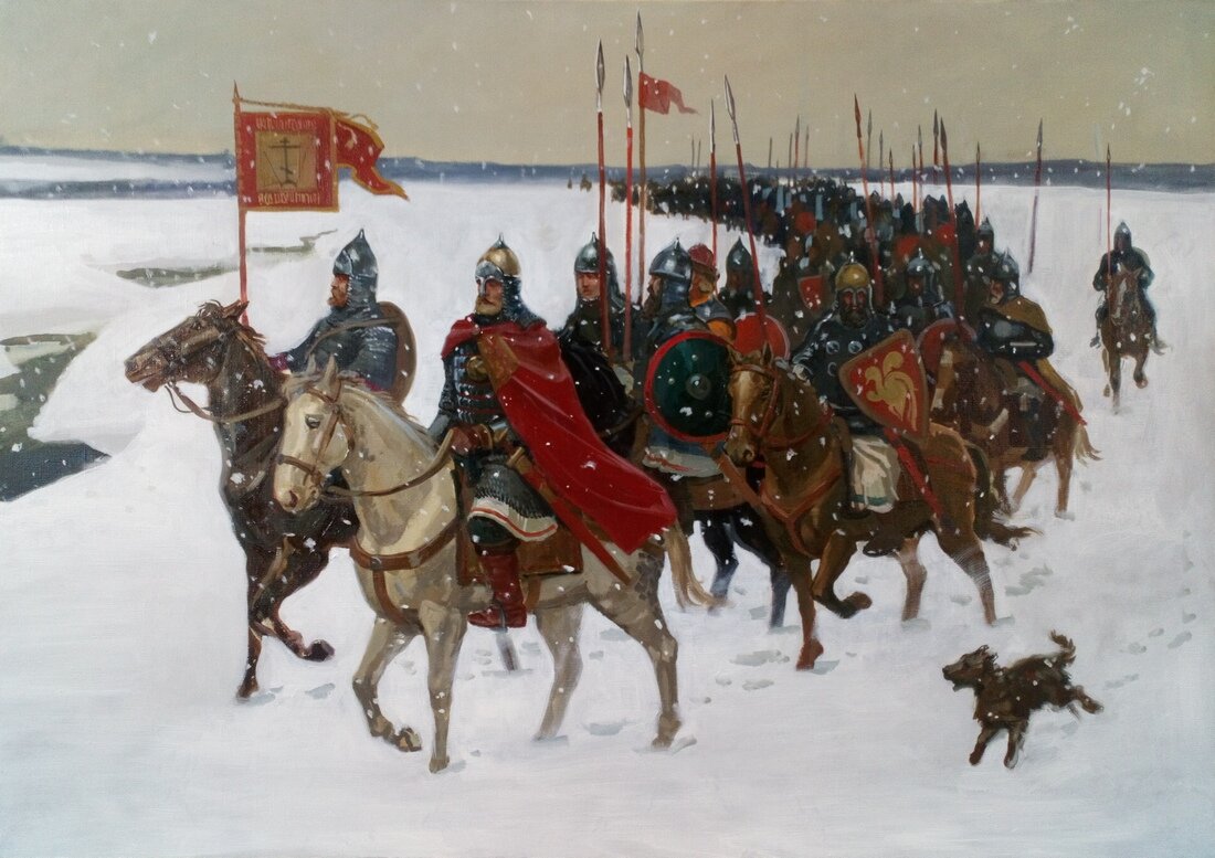 …На другой день сочли убитых на рати- четыре с лишком тысячи полегло тверичей, уязвленных и того боле. Москвитян, не считая, покидали в проруби. Полонян отправили в Тверь и прочие города, часть за крепкою сторожею в Старицу, Зубцов и по волостям, поднимать сожженные грады. За день до Твери князь отпустил свое войско. - Куды ж Гюргий-то задевался?- молвил он, покачиваясь в седле. - Средь мертвых не сыскали,- ответил Коляда, ехавший рядом. - К хану пойдет, так мыслишь? - Не иначе. - С Кавгадыем что станем делать? - Ты, государь, великий промысл учинил,- сказал в ответ Коляда.- Никто покуда татар не бивал. Зри, каково войско-то воспрянуло!- повел он рукою за спину. Михаил оглянулся- ратники шли, растянувшись длинною лентою по дороге, весело балагурили, неся на плечах оскепы, будто и не было тяжкого перехода и жестокой сечи. С возов в хвосте доносило звук сопелок и бубнов. - А до Кавгадыя… Не худо б его с татарвою на крючьях за ребры повдоль пути повешать. А по уму- приветь, до отпусти с