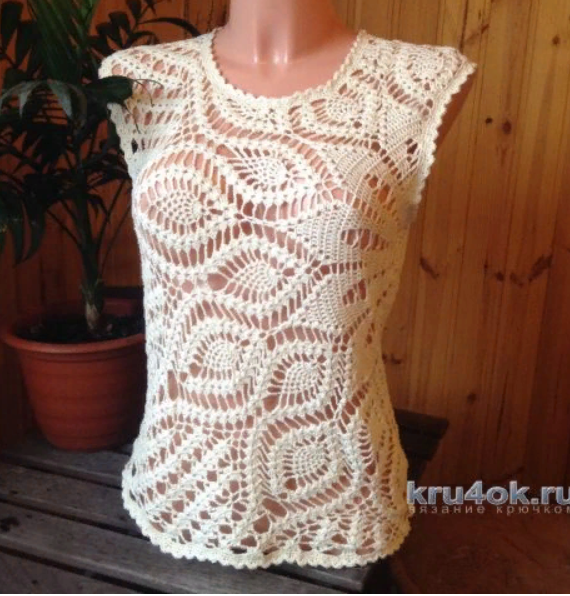 Пряжа «Coco»VITA cotton, 240 м в 100 г.100% мерс. хлопок. Понадобилось около 200 г пряжи. Крючок 1,50. Размер 44. Описание летней кофточки Начинала вязание с середины цветка. Постепенно, согласно схеме, оформляются проймы, горловина. С одного бока получается небольшой шовчик. Обвязала детали несколькими рядами ст.б. накида и последний ряд узором «веерочки» из полустолбиков (5 п/ст в одну петлю, пропуская между ними по одной петле нижнего ряда. РОВНЫХ ВАМ ПЕТЕЛЕК!