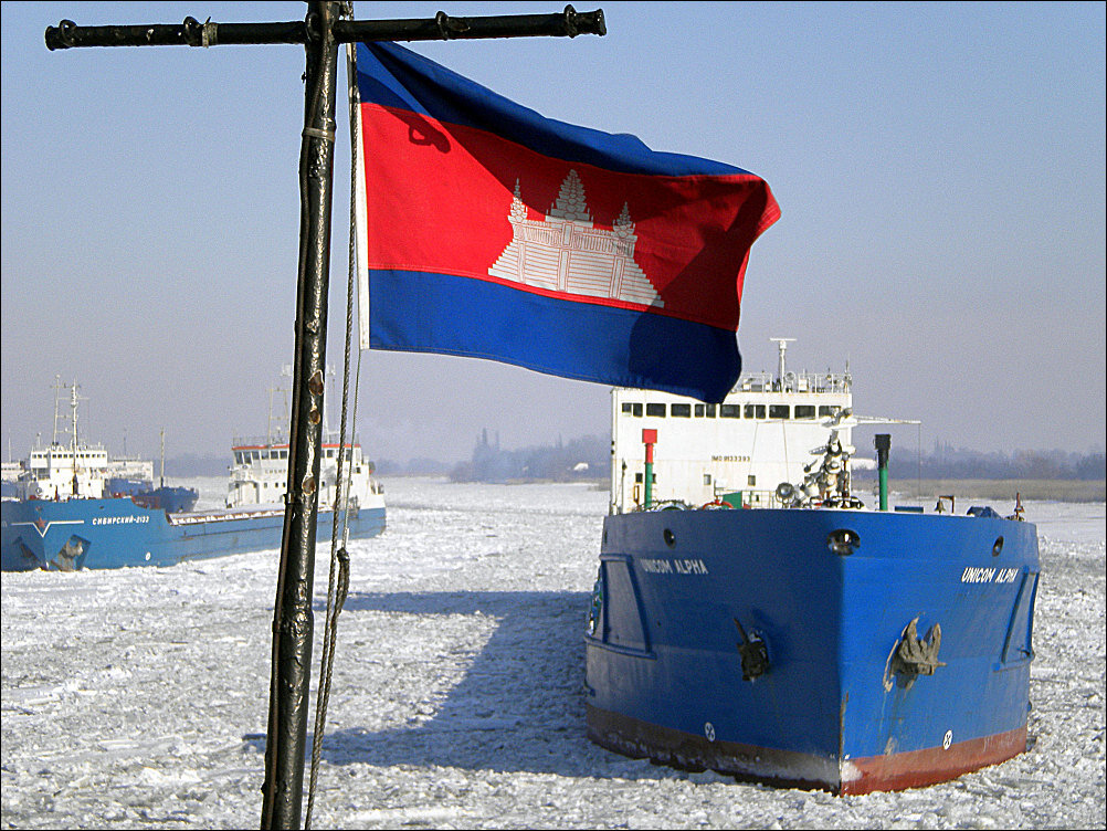 В ряде государств "удобного" флага применяются минимальные требования к состоянию судов и экипажа, минимальный контроль со стороны государства флага. Да уж, на таком гнилом старье пришлось поработать под этим самым камбоджийским флагом...