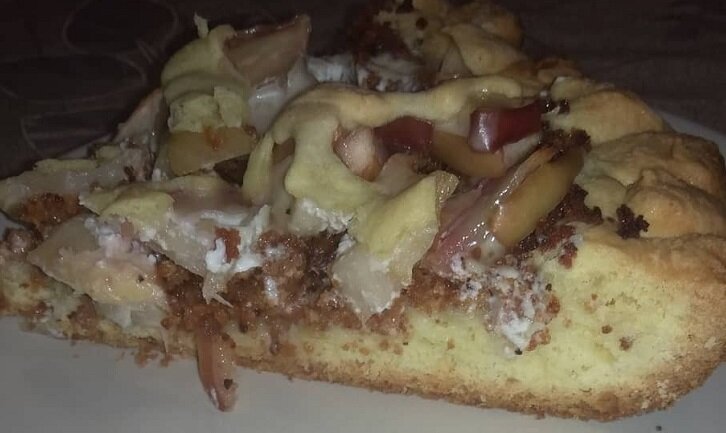 Алисә Ибраһимовадан кызыл эремчекле алма пирогы рецепты. Камыр өчен. 200 гр. акмай; 100 гр.шикәр комы 2 йомырка 2-3 аш кашыгы кибет каймагы 300-350 гр.он (чама белән) ; 1 чәй кашыгы камыр көпшәкләндергеч (разыхлитель); Бер чеметем тоз. Камырга онны акрынлап кушабыз. Аз булса бераз өстибез. Эчлек өчен. Кызыл эремчек (корт,тура),алма (шикәр кушып бераз гына парландырып-пешереп алабыз), 20 процентлы кибет каймагы, 2 аш кашыгы шикәр комы. Пирог өчен камыр басабыз. Майны шакмаклап турыйбыз, шикәр комын салып май белән бутыйбыз, 4 аш кашыгы он салып валчык хасил булганчы уабыз, ике йомырканы, кибет каймагын салабыз, калган онны + көпшәкләндергеч (разрыхлитель) салып, камырны басып бетерәбез. Артык йомшак булса 4-5 аш кашыгы онны кушарга була. Ике кисәккә бүлеп, кисәкләрне аерым элпәгә (пищевая плёнка) төреп, ярты сәгатькә суыткычка куябыз. Камыр ял иткәндә эчлекне әзерлибез. Алманы телемнәп турыйбыз, шикәр комы,1-2 аш кашыгы су салып парландырып пешереп алабыз.Суытырга куябыз. 100 грамм 20