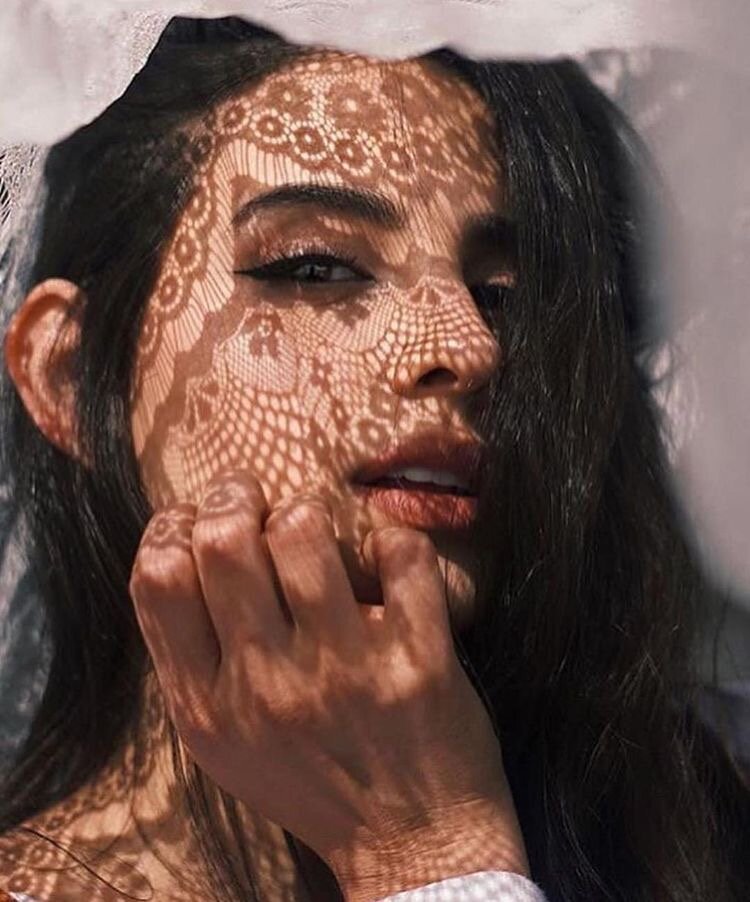 📷 С тенями на лице от кружевной ткани; 📷 Через стекло балкона; 📷 Рисуя акварелью, сидя на полу; 📷 Разложить на полу фон из разной литературы; 📷 Нарисовав на теле что-нибудь; 📷 Приклеить цветочки и бусины на тело или лицо; 📷 Выглядывая из-под одеяла;