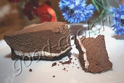 - Торт великолепный. Причём его вкус и консистенция очень сильно меняются со временем. Если песочный корж всё время остаётся суховато-рассыпчатым, то нежный шоколадный крем от выстаивания в холодильнике твердеет. А слой безе наоборот размягчается, превращаясь в воздушную прослойку, напоминающую зефир. Аромат у торта насыщенно шоколадный. Прослойка безе не только симпатично смотрится на срезе, но и придаёт торту лёгкую кислинку, которая появляется из-за добавления лимонного сока. Несмотря на то, что крема очень много, торт не кажется тяжёлым и жирным. Количество сливочного масла можно сократить - до 70-80г в тесте и до 50г в креме. Описание приготовления получилось очень длинным, хотя на самом деле торт делается очень просто - обычное песочное тесто плюс обычное безе плюс заварной шоколадный крем, который даже не нужно взбивать с маслом, а достаточно всего лишь растопить масло в горячем креме.