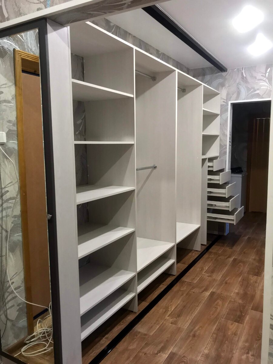Еще одна прихожая с маленьким но интересным дополнением. Много было продуманно и прорисовано, но многие из вариантов были без того самого маленького шкафчика (но очень функционального), который отображен на последних двух фото. Многие скажут нам не нравятся шкаф купе из за дверей-сделайте нам с распашными дверьми , но не в данном варианте и размерами помещения. И так почему мы сделали шкаф купе а не распашной, ширина от стены до стены всего лишь 1 метр и 60 сантиметров, глубина шкафа 60 см. у нас остается проход ровно 1 метр, т.е. можно спокойно ходить и не сталкиваться плечом друг о друга. А теперь представим что у нас шкаф с распашными дверьми размер которых оптимален 50-60 см. со стороны кажется что все нормально, но внутренние пространство шкафчиков сразу же делается под эти размеры и это не всегда удобно. И еще один не мало важный момент это когда двери это шкафа открыты соответственно наш проход уменьшается. На этом я думаю хватит. P.S. Все заказы выполняются индивидуально по