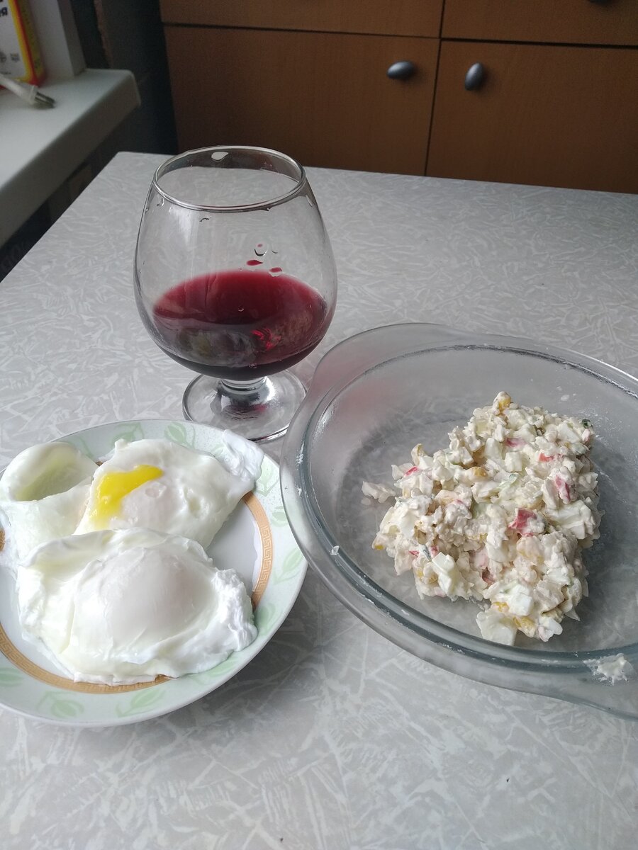- Открываем бутылку вина. Наливаем в бокал и начинаем готовиться к приготовлению завтрака.