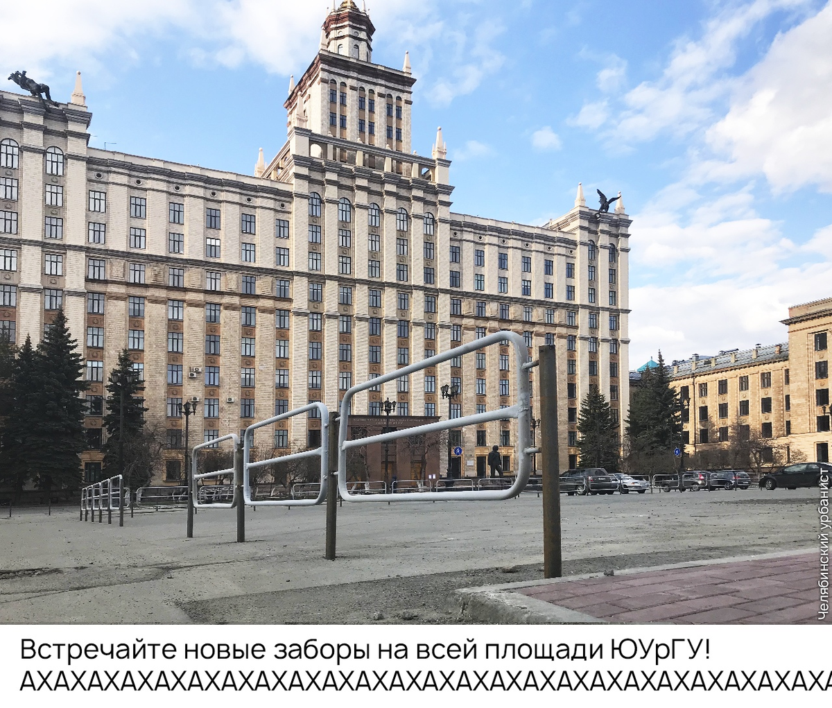 Вначале они ненавидели пешеходов, теперь решили ненавидеть и водителей. Простите, я не знаю, как комментировать то, что произошло. Кажется, чиновники завершили благоустройство площади ЮУрГУ.