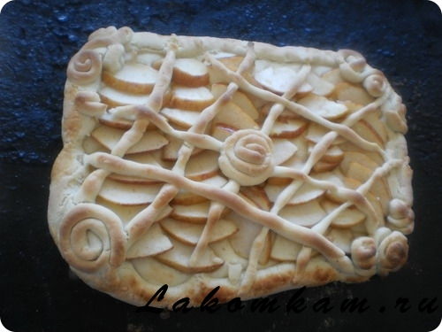Резанные дольки яблок укладываем на пирог т
