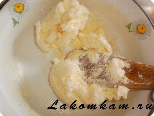 Выпечка «Пирог из песочного теста с яблоками». Приготовление. Маргарин растираем с сахаром как можно лучше, чтобы сахар растворился.