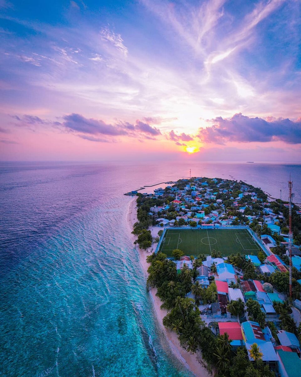 Махибаду – один из Мальдивских островов. Здесь расположено футбольное поле, которое даже сейчас вряд ли закроется на карантин. Длина этого острова составляет 945 метров, а его ширина – 305. Население острова около двух тысяч человек. Фото: instagram @natea23.mv