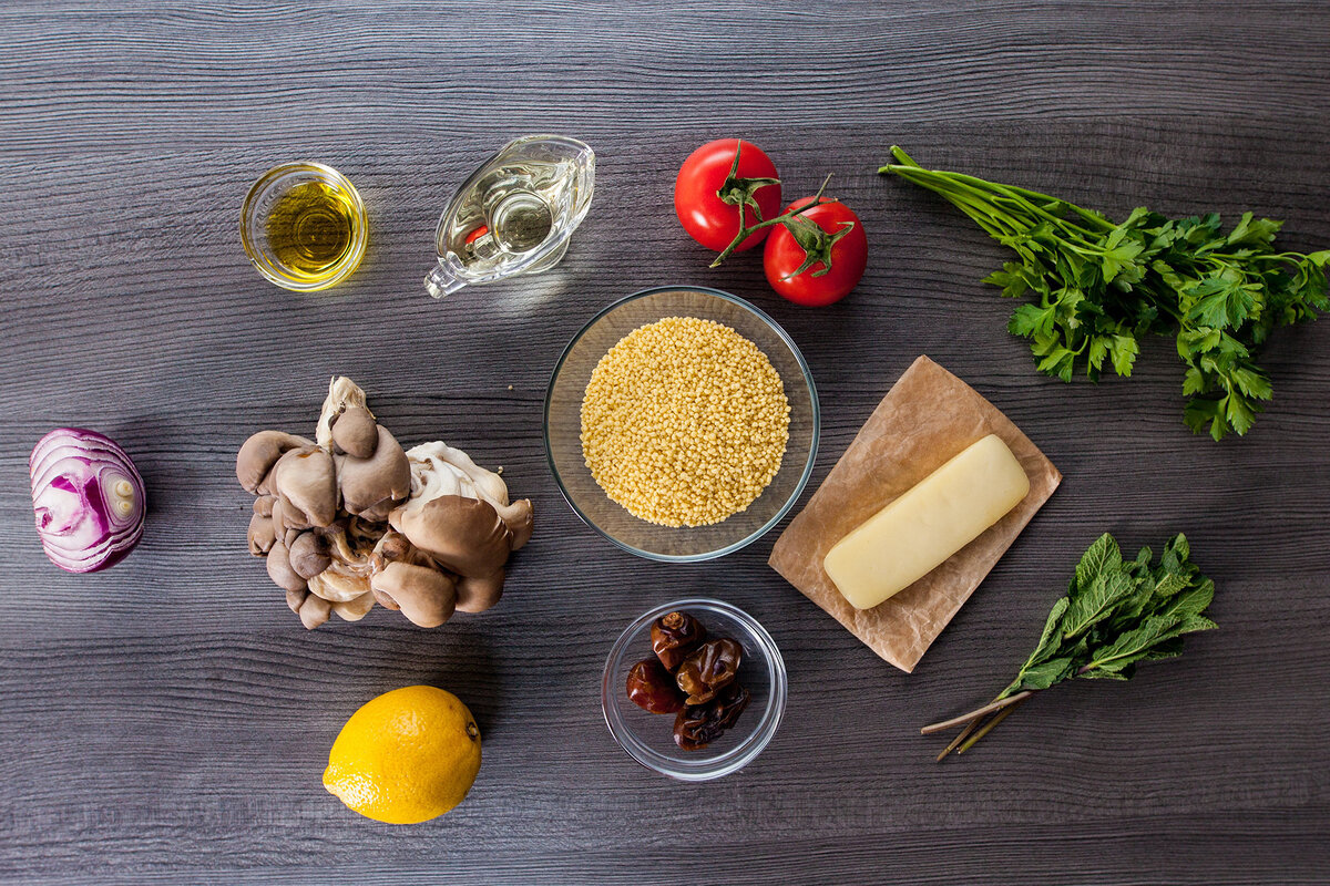Кускус залить горячей водой чуть выше уровня крупы и накрыть крышкой на 5 минут.
