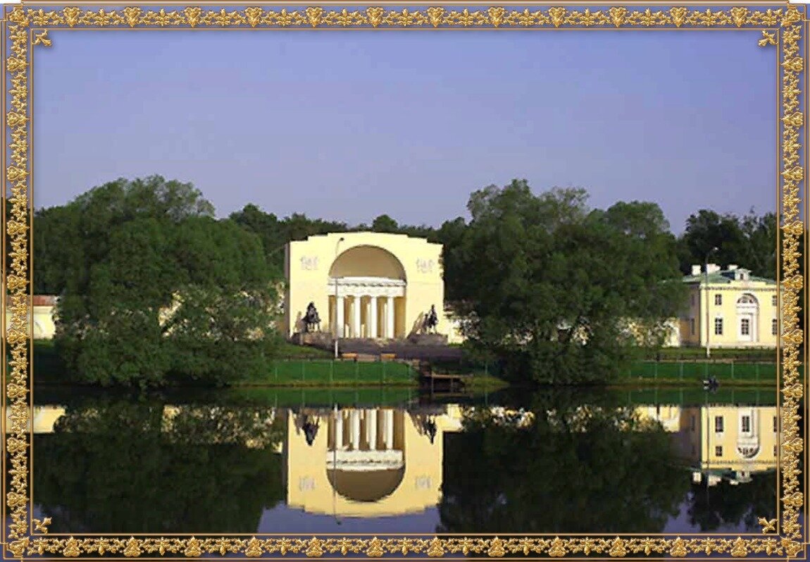Бывшая усадьба князей Голицыных находится на территории Кузьминского парка на юго-востоке Москвы. Благодаря величию архитектурных ансамблей и красивому расположению она является любимым местом отдыха москвичей и гостей города. Музыкальный павильон Изюминкой усадьбы, ее символом считают Музыкальный павильон, построенный по проектам известного зодчего Доменико Жилярди. Это здание имеет форму возвышающейся арки, внутри которой стоят 8 колонн в два ряда. Вверху в нише ранее располагалась трехфигурная композиция: Аполлон, играющий на лире, с двумя музами. Эта гипсовая композиция "Аполлон и аллегории Гармонии и Поэзии", созданная по моделям скульптора И.П.Витали была установлена над колоннадой Музыкального павильона Конного двора в 1823-м году. Уничтожена при пожаре в 1978-м. Сейчас по бокам павильона на пьедесталах красуются чугунные кони работы П.К.Клодта. Они являются одним из вариантов бронзовых композиций на Аничковом мосту в Санкт-Петербурге. Павильон спроектировали таким образом, чт