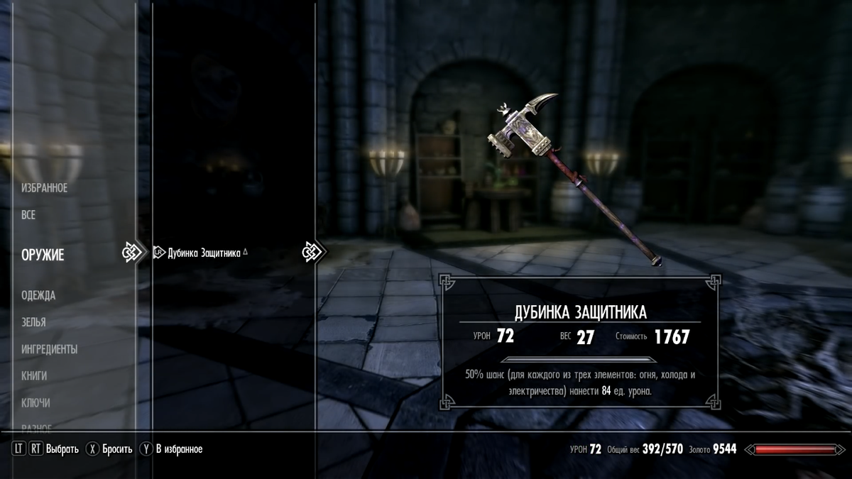 Эта статья будет посвящена одному из самых лучших двуручных оружий в игре "Дубинке защитника". Это оружие имеет огромный потенциал для того, чтобы стать абсолютным чемпионом разрушения. Изначальный базовый урон равен 24-ем единицам, который будет расти при прокачке навыков персонажа. Также стоит отметить его уникальный внешний вид, но самым удивительным качеством этого оружия, является 50%-ая вероятность нанесения урона одной из стихий: огня, холода или электричества. Изначально урон стихией равен 25-и единицам, но их можно повысить прокачивая своего персонажа. При желании можно снять это зачарование на пентаграмме душ и повесить его на другое оружие по своему желанию. Многие враги Скайрима имеют стойкость к одному из трех эффектов, но не сразу ко всем трем, имеющемся на этом оружии. Так что советую каждому получить эту уникальную и красивую дубину. И давайте я расскажу, как это сделать. Нам нужно начать проходить дополнение "Dragonborn", после чего разблокируется новая локация. Нам