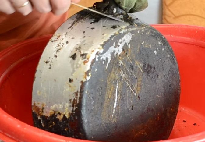 У всех дома есть сковорода, которой уже много лет. О ее возрасте может сказать толстый слой нагара. Но не стоит спешить с ней расставаться, так как очистить ее проще, чем кажется. Мы расскажем вам о методе, который поможет даже в самом безнадежном случае. Возьмите кастрюлю или алюминиевый таз, наполните его водой и поставьте на огонь. После закипания добавьте туда силикатный канцелярский клей. На каждый литр воды необходимо семьдесят граммов клея. Опустите туда подготовленную посуду. Это может быть сковорода, кастрюля, решетка газовой плиты или казан. Оставьте кипеть на время от часа до двух. Когда истечет необходимое количество времени, извлеките посуду из раствора и очистите нагар с помощью острого предмета. После такой процедуры все загрязнения размягчатся и будут с легкостью удаляться со сковороды. Не забудьте промыть посуду водой, чтобы смыть остатки клея. В его составе есть вещества, которые способны размягчить даже самые толстые отложения. Пользоваться этим способом можно не чащ