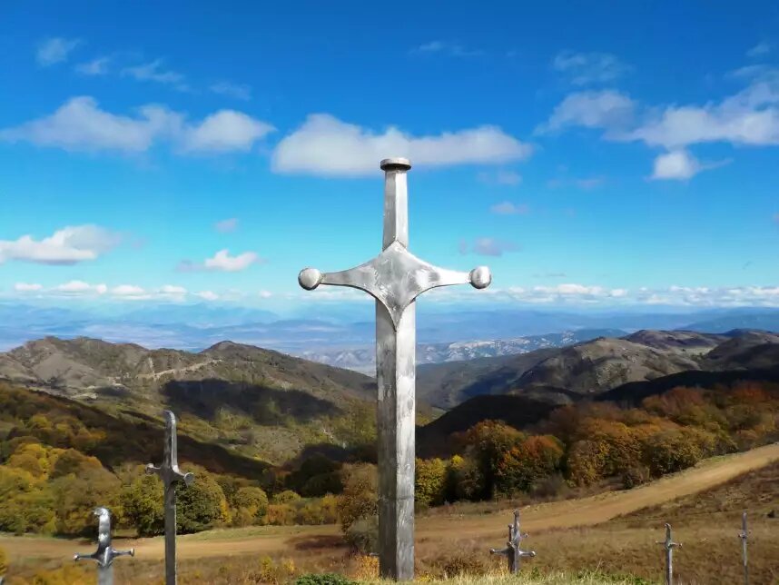 Приветствую дорогие читатели. Сегодня наш разговор пойдет о интересном монументе который находится на территории Грузии. Дидгорский монумент - это грандиозное произведение советских скульпторов 1976 года. Состоит он из комплекса колонн, металлических мечей и скамеек. Монумент был установлен примерно в том же месте где в 1121 году произошла Дидгорское сражение. Дидгорская битва - событие, вокруг которого посей день столько же споров, сколько вокруг грузино-осетинской войны. Около 1120 года царь Давид Строитель начал постепенно завоевывать крепость за крепостью у Тифлисского эмирата. Сам эмират сократился до размеров города Тбилиси, и дни его были сочтены. Мусульмане в какой то момент осознали угрозу и решили дать отпор Давиду. Им удалось собрать внушительную армию, о размере которой спорят по сей день. Сражение произошло 12 августа 1121 года и стало самой знаменательной битвой в грузинской истории. По итогу масульмане были разбиты и отступили в сторону Тбилиси. В последствии гор