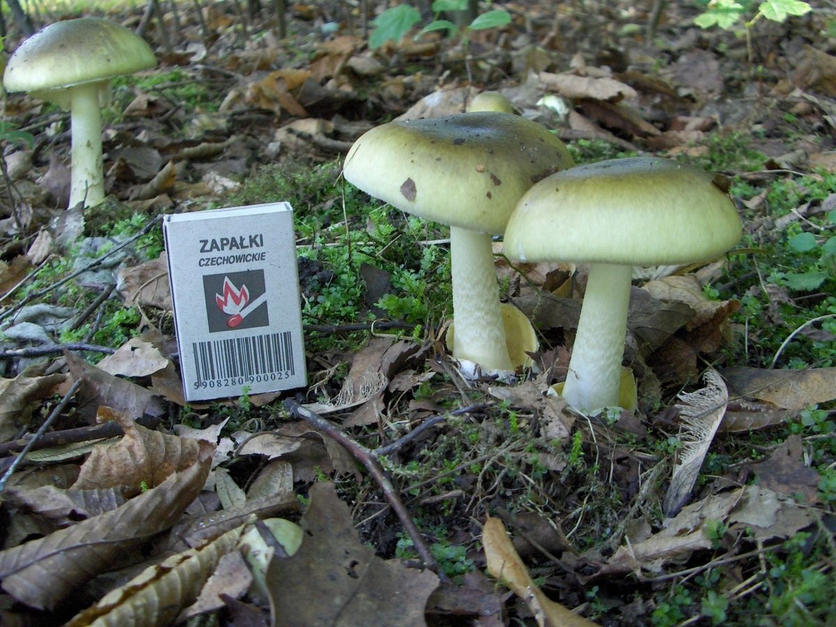 Первые признаки отравления бледной поганкой проявляются довольно поздно – через 8-18 часов, что характерно для этого типа отравления. Возникают головная боль, головокружение, нарушение нормального зрения; одновременно развивается бурно протекающий холероподобный гастроэнтероколит с неукротимой рвотой и сильными болями в животе. Наступает обезвоживание организма: больной ощущает сильную жажду, нарастает слабость, наблюдается потеря голоса, возникают судороги, особенно в икроножных мышцах. Отмечается сгущение крови и уменьшение выделяемой мочи вплоть до полного прекращения мочеотделения. Появляется обильный пот, холодеют конечности, кожа их приобретает синюшный цвет, пульс становится слабым, температура падает до 36-35 ?С. Через некоторое время приступы исчезают (часа на два), но затем вновь возобновляются; больной слабеет, впадает в забытье. На 2-3-й день понос и рвота становятся реже. В это время появляются симптомы печеночно-почечной недостаточности. Печень увеличивается и становится болезненной, может наблюдаться желтуха. Развивается коматозное состояние, для которого характерно максимальное расширение зрачков, желтушность склер, падение артериального давления.