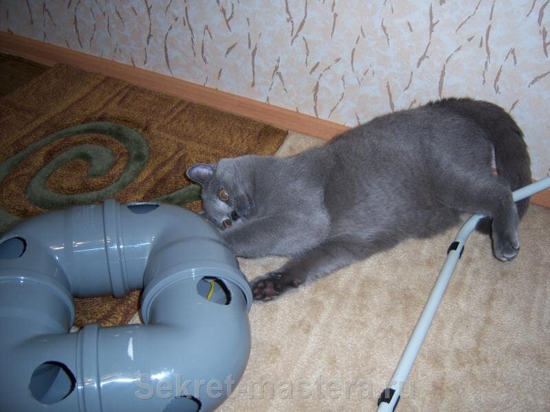 Самодельная игрушка для кошки собрана своими руками меньше чем за час. Требуется навык работы с инструментом.