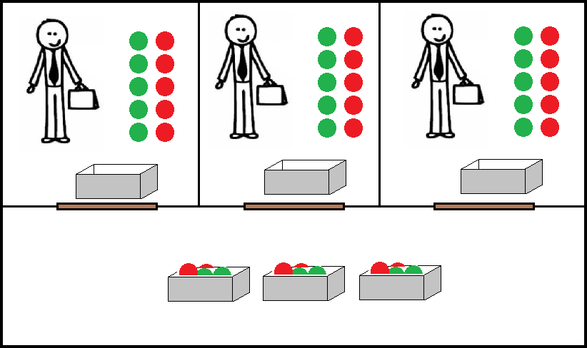 Вот еще одна авторская задача на развитие креативного мышления и логики! Троих математиков поместили в три комнаты по одному в каждую. Они не могут слышать, видеть и как-либо общаться друг с другом. Организатор сказал каждому участнику эксперимента случайное число от 1 до 98 таким образом, что в сумме они дают 100, и математики об этом знают. В комнате у каждого математика есть коробка, в котором находится пять зеленых и пять красных шаров. Они оставляют какое-то количество шаров в нем и отдают коробку. Затем организатор сообщает всем троим участникам количество и цвет шаров в коробке у каждого. Но математики заранее договорились о способе расчета, и теперь каждый с двух попыток может угадать - какие числа загадали остальные. Какую стратегию могли придумать математики?