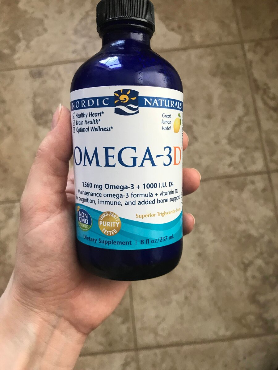 Дети наконец-то полюбили омегу. Этой зимой наш фаворит - Omega-3D от Nordic Naturals. В каждой порции (5 мл. или одна чайная ложка) содержится 1560 мг омега-3, а также 1000 МЕ витамина D3. Это формула обеспечивает комбинированную поддержку работы сердца, мозга, костей и иммунитета. Волосы и ногти растут во время приема ощутимо быстрее. Кроме того, прием омега-3 положительно влияет на когнитивные способности ребенка - дети становятся спокойнее, усидчивее, лучше усваивают информацию. Весомый плюс именно омеги от компании Nordic naturals - то, что рыбий жир добыт не из печени трески, а из анчоусов и сардин. Печень трески - не лучший вариант, так как печень накапливает ртуть. А вот тушки небольших рыб, как анчоусы и сардины, - более качественное сырье для выделения омега-3. Весь рыбий жир поставляется в форме триглицеридов и отвечает самым строгим международным стандартам чистоты и свежести. Для нейтрализации рыбного запаха добавлен натуральный лимонный ароматизатор. Дети (да и взрос
